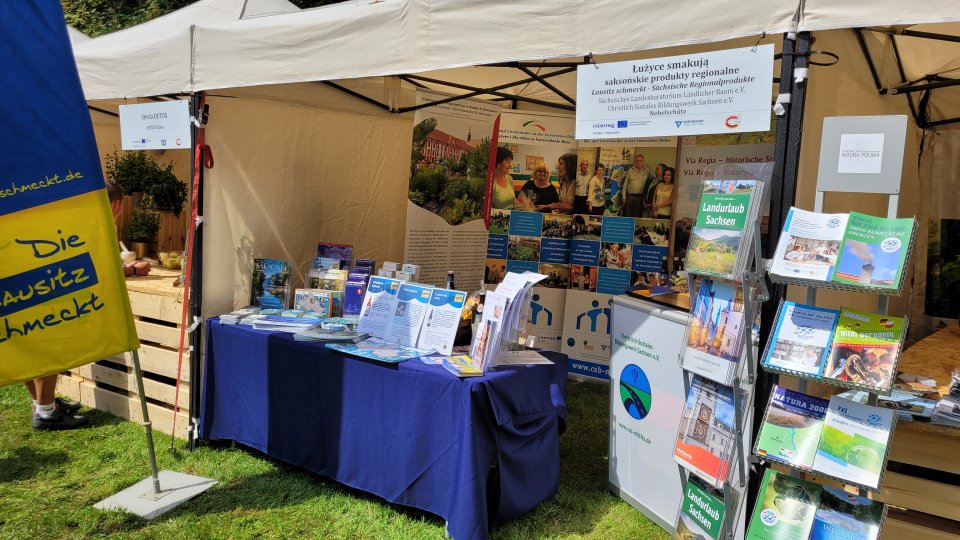 Auf Einladung der Stiftung Fundacja Natura Polska präsentierte sich das Christlich-Soziale Bildungswerk Sachsen e. V. (CSB) gemeinsam mit dem Sächsischen Landeskuratorium Ländlicher Raum e.V. (SLK) am 3. August 2024 auf der „4. Ausstellung regionaler und Lausitzer Produkte“ im polnischen Lubomyśl (bei Żary). Thematischer Schwerpunkt der diesjährigen Ausstellung im Park von Lubomyśl war das Thema gesunde Ernährung. Vor diesem Hintergrund standen bei der Vorstellung der Aktivitäten der beiden Vereine insbesondere die Angebote des „Ernährungs- und Kräuterzentrums“ des CSB sowie die Initiative des SLK „Die Lausitz schmeckt“ im Mittelpunkt.