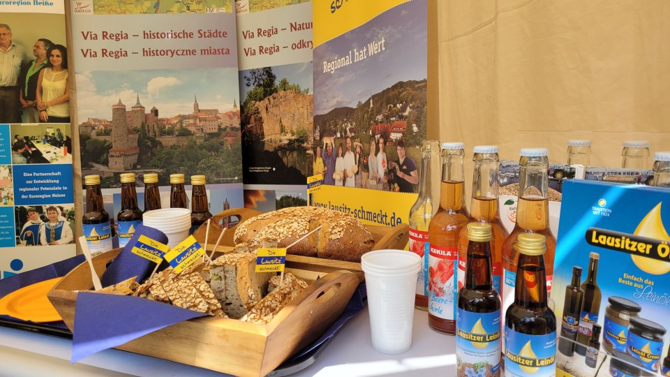Besucher der Ausstellung, welche aus Lubomyśl und Umgebung, aber auch aus Brandenburg und Sachsen kamen, hatten am Gemeinschaftsstand die Möglichkeit, sich zu den Angeboten des Ernährungs- und Kräuterzentrums sowie der Vielfalt regionaler Produkte aus der Lausitz zu informieren. Außerdem erhielten sie einen Einblick in die grenzübergreifenden Aktivitäten der beiden Vereine SLK und CSB. Großer Beliebtheit erfreuten sich die Tipps und Rezepte für eine gesunde, ausgewogene Ernährung, welche die Besucher mit nach Hause nehmen konnten. Aber auch Kostproben von Spezialitäten, wie Lausitzer Leinöl, Säfte und Lausitzer Brot, kamen beim Publikum gut an.